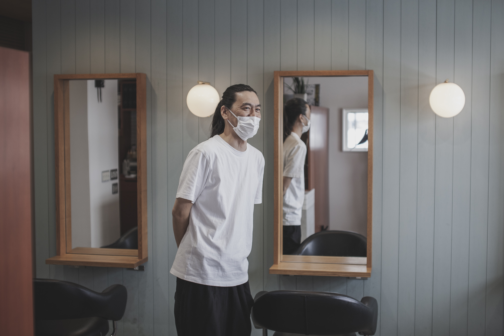 鬼才ハーモニー・コリンの映画のタイトル、はたまた真夜中のFMから流れてくる名曲と同じ名を冠したヘアサロン。ミスター・ロンリーは、小矢部市郊外の閑静な街並みを車で走らせると、そっと佇むように見えてくる。高岡市に自宅を構える店主の松嶌宏之さんが、縁もゆかりもなかったこの土地に出会ったのは偶然だった。「娘のピアノ発表会で初めてこのあたりに来て、なんとなくいい雰囲気だなと感じたんです。改めて土地を探しにここを通った時に、体にビビッとカミナリみたいなものが走って。その瞬間に、もうここしかないと迷うことなく決めました」。オープンしてからも近隣に挨拶に回る程度で、積極的なPRはしなかった。だが、以前勤めていたお店のお客さんや、道すがらにお店を見つけた地元の人たちで徐々に評判は広がっていった。